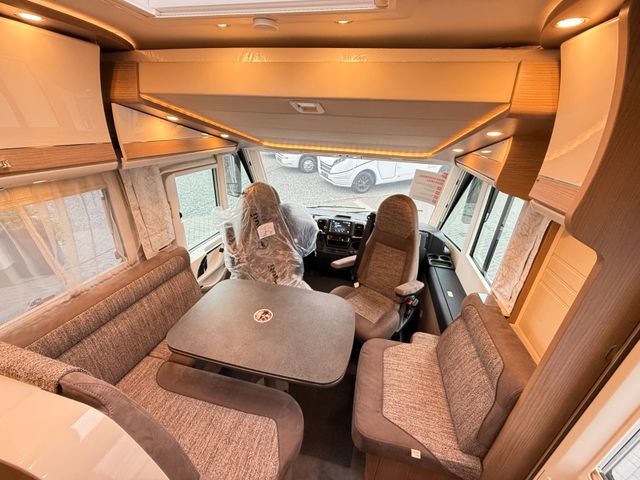 Steckdosenpaket mit Zusatzsteckdosen (3 x 230 V, 2 x USB) Dachmarkise Kassette Alu, Tuch grau, Länge: 5,0 m Frontscheinwerfer in LED-Technik Pioneer Multimediasystem 9' inkl. Navigation, Reisemobil-Routenführung und DAB+ Truma DuoControl CS Kaffeekapselmaschine mit Anschluss-Set inkl. Auszugsystem Teppichboden für Fahrerhausbereich Stilwelt Bellagio: Möbeldekor Edelkirsche mit Dachschrankfronten in Bicolor-Optik mit Hochglanz-Elfenbein Bezüge: Lissabon 25 - Antara-Stoff-Kombination Malibu Schlafwelt & Deko-Set: Dekokissen, Wohndecke, Spannbettlaken-Set