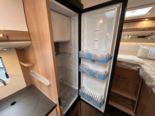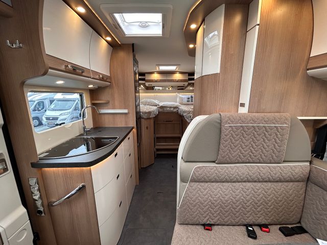 •XL-Aufbautür "premium two 2.0" (Breite 63 cm) mit Doppelverriegelung, Fenster-und Insektenschutzrollo•Indirekte Ambientebeleuchtung Wohnraum und Küche in LED-Technik•USB-Steckdose im Dachstauschrank über Heckbett•Dachluke Midi-Heki über L-Wohnsitzgruppe•Malibu Rückleuchten mit LED-Leuchtband•Truma CP Plus digitales Bedienpanel•Große Garagentür auf Fahrerseite•Hohlwaben-Isolierfrontplissee mit vertikaler Bedienung und FaltplisseeSeitenscheiben•SOG-Toilettenlüftung über Dachkamin•Lithium-Ionen-Batterie 90 Ah inkl. Batteriecomputer anstelle 80 Ah Gel-Batterie