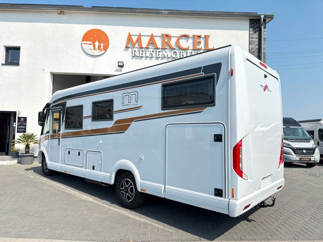 AnhängerkupplungZentralverriegelung für XL-Aufbautür "premium two 2.0" und FahrertürDachmarkise Kassette Alu, Tuch grau, Länge: 5,0 mLithium-Ionen-Batterie 90 Ah inkl. Batteriecomputer anstelle 80 Ah Gel-BatterieWechselrichter 18000W 12V -> 230VSteckdosenpaket mit Zusatzsteckdosen (3 x 230 V, 2 x USB)Malibu-Connect iNet-X inkl. Farbdisplay mit Funktion "Touch", Bluetooth und App- SteuerungTruma DuoControl CSZusätzlicher TV-Anschluss im SchlafraumAußendusche warm/kalt in Rollergarage auf BeifahrerseiteDachluke Mini Heki über KüchenbereichDachluke Mini Heki im FahrerhausStilwelt Bellagio: Möbeldekor Edelkirsche mit Dachschrankfronten in Bicolor-Optikmit Hochglanz-Elfenbein5. Sitzplatz in Seitenbank mit 2-Punkt-GurtLondon (25) (Serie) Stoff-KombinationMalibu Schlafwelt & Deko-Set: Dekokissen, Wohndecke, Spannbettlaken-Set