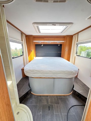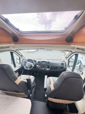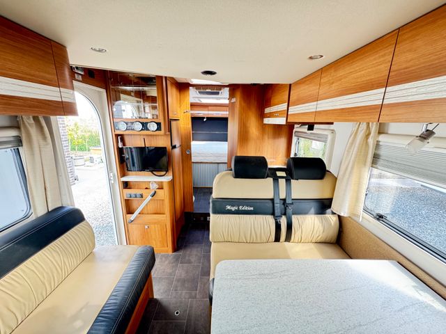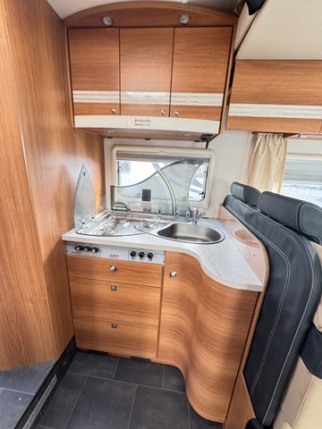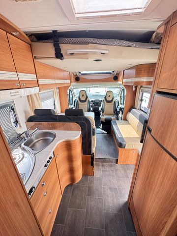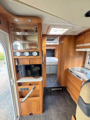 2x Elek. Fensterheber 2x Elek. Außenspiegel Anti Blockier System ( A.B.S. ) Antischlupfriegelung ( ASR ) Bordcomputer Fahrer u. Beifahrerairbag Fahrer+Beifahrersitz höhenverstellbar Queensbett und Hubbett. Sitzgruppe mit Drehbare Fahrer u. Beifahrersitz Sitzgruppen umbaubar auf ein Schlafplatz Sitzgruppentisch verschiebbar Fliegengitter/Gardienen/Verdunkelungsrollo´s Wohnraumtür mit Fliegengitter Verdunklung Front und Seitenscheiben Kühlschrank mit Gefrierfach. Küchherd mit 3x Flammenkocher Küchenspüle mit Glassabdeckung Trumatik C Umluftheizung mit Intergriertem Warmwasserboiler WC Nasscelle mit Cassette von außen entleerbar Großer Kleiderschrank Elek. Einstiegsteppe