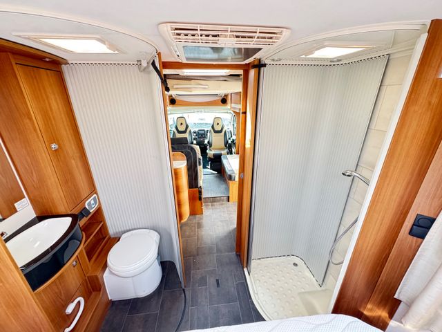 Fahrradträger Heckgarage Markise Navigationssystem Panorama-Dach SAT-Anlage Separate Dusche Servolenkung Solaranlage Standheizung TV Warmwasser WC Zentralverriegelung Tempomat Klimaanlage Standklimaanlage