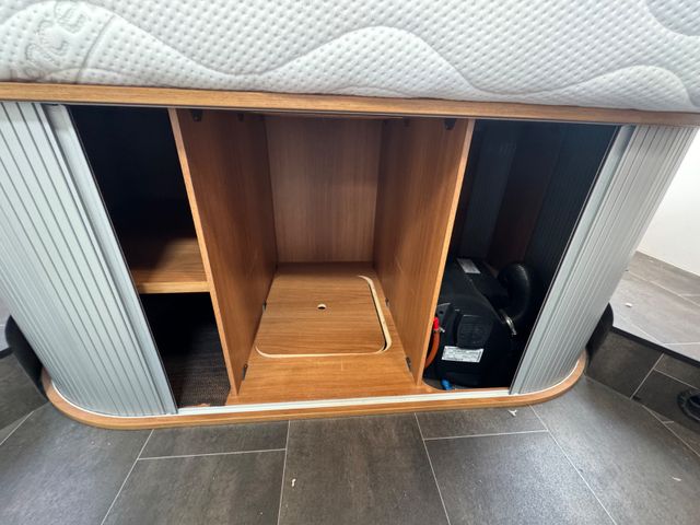 Sitz- und Schlafgelegenheiten: Anzahl Schlafplätze: 5 Zugelassene Sitzplätze: 4 Queensbett Doppelbett im Frontberereich Bettumbau Sitzgruppe Mittelsitzgruppe Seitensitzgruppe L-Sitzgruppe