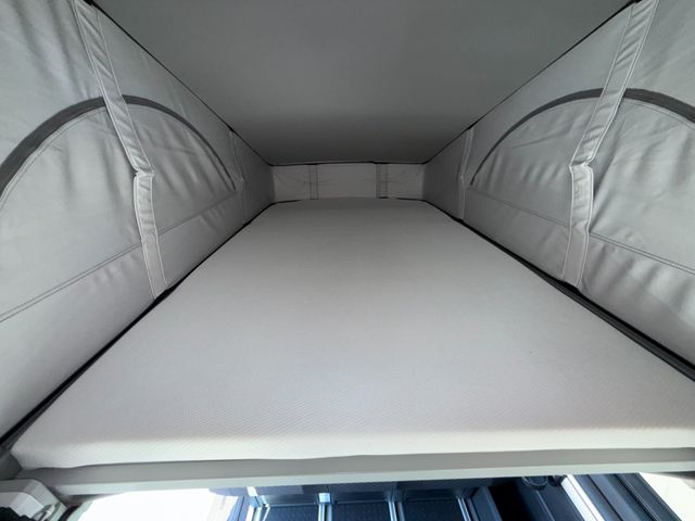 Aufstelldach manuell betätigt mit Bugfenster und Frontöffnung, Faltenbalg grau, Ausstattungs-Paket: Komfort-Paket, Außenspiegel elektr. verstell-, heiz- und anklappbar, Deaktivierungsschalter für Antriebs-Schlupfregelung (ASR), Fahrassistenz-System: Einparkhilfe vorn und hinten, Fahrwerk 17", Tempomat, Lackierung: Sonderlackierung Candy-weiss uni / Dach Schwarz, Markise seitlich, Reserverad in Fahrbereifung, Rückfahrkamera, Scheibenwaschdüsen beheizt und Anzeige für Waschwasserstand, Schubladen unter Dreiersitzbank und Abfallbehälter, Zusatzheizung (Warmwasser) mit Standheizfunktion und Fernbedienung