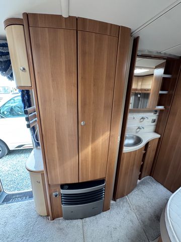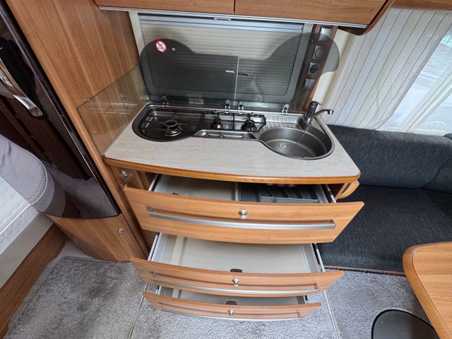 Warmwasser WC Alufelgen Serviceklappe hinten rechts Großer Kühlschrank Absorber 3-Flammkocher Truma Combi Heizung TV Halter Sky 10 schwenkbar Anti-Schlingerkupplung AL-KO Deichselfahrradträger Thule 100er Zulassung Außenstauraumklapp Midi-Heki Vorzeltleuchte Verdunkelungs- und Fliegenschutzrollos Abwasser-Rolltank Cassetten-Toilette Truma Warmwassertherme elektro Nasszelle mit Fenster Separates Waschbecken Frischwassertank Große Stauklappe am Bug für 2 x 11 kg Gasflaschen