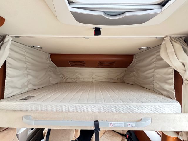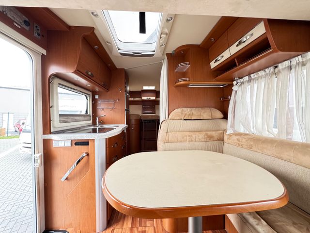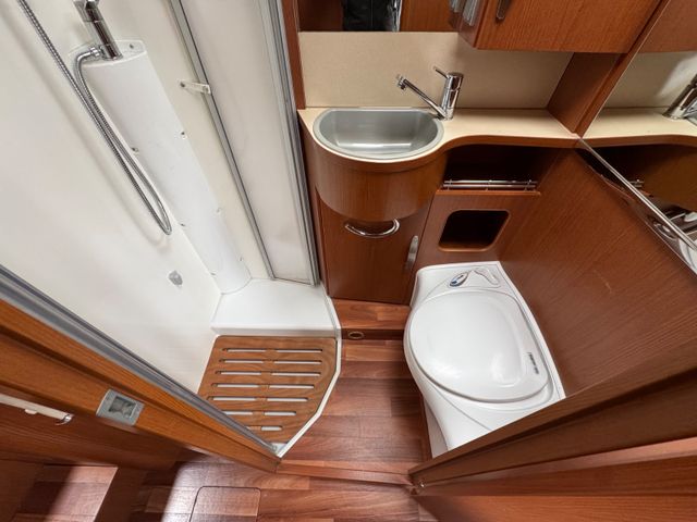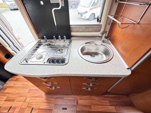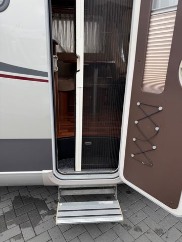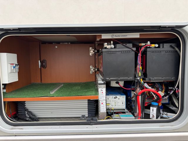 Aus erster Hand Nichtraucherfahrzeug Doppelboden (Winterfest) Heckgarage Markise SAT-Anlage Separate Dusche Servolenkung Solaranlage TV Warmwasser WC Zentralverriegelung Tempomat Klimaanlage Anti-Blockier-System (ABS) Antriebsschlupfregelung (ASR) 1x elektrischer Fensterheber 2x elektrische Außenspiegel Fahrer- und Beifahrerairbag Wohnraumtür mit Fliegengitter Kühlschrank mit separatem Gefrierfach 2. Wohnraumbatterie RückfahrkameraKüche: 3-Flammen-Gaskocher Spüle mit GlasabdeckungBad: WC-Nasszelle mit von außen entleerbarer KassettentoiletteWeitere Ausstattung: Gasflaschenkasten für 2x 11 kg (DuoControll) Elektrische Einstiegstreppe Faltverdunklung Fahrerhaus Truma Combiheizung