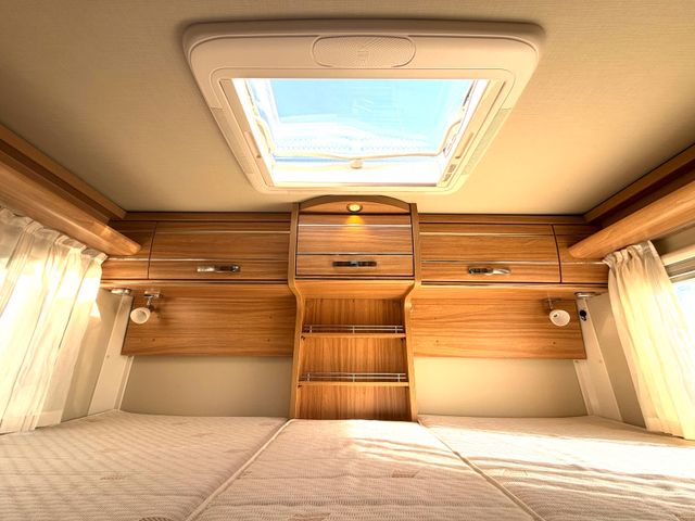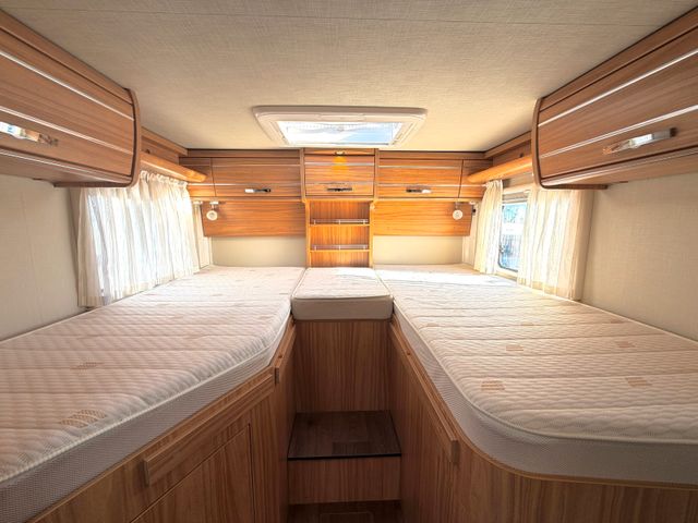 Grüne Plakette, Euro 66-Gang SchaltgetriebeTempomat/LimiterTÜV+AU NeuZahnriemen, Wasserpumpe & Öl-Service Neu 07/25Pilotsitze mit Armlehne, drehbarFahrer-und BeifahrerairbagFahrerhausverdunklung / PlisseesRadio, Rückfahrkamera, Navi, BT, FreisprechanlageHandy/Tablet-Halterelek. Fensterheber,Thitronik AlarmanlageGoldschmitt Luftfederung Heck (dadurch aufgelastet 3,85T)Solaranlage 2x 100Wp2x 100Ah Lithiumbatterie LiFePo Liontron mit BMSTruma CombiSat-Anlage Alden Vollautomatisch mit TVMarkise ThuleLineppe Lastenträger Typ XtraFold (130 Kg max.)Kühlschrank mit sep. GefrierfachWC und sep. DuscheFenster und Wohnbereich Tür mit Fliegenschutzgitter und RolloTeppichboden für WohnraumEinzelbettenHubbett vorne4 Sitzplätze, 4 mit Gurt3850 kg zulässiges Gesamtgewicht2970 kg Leergewicht (laut Fahrzeugschein)L: 6995B: 2350H: 2850