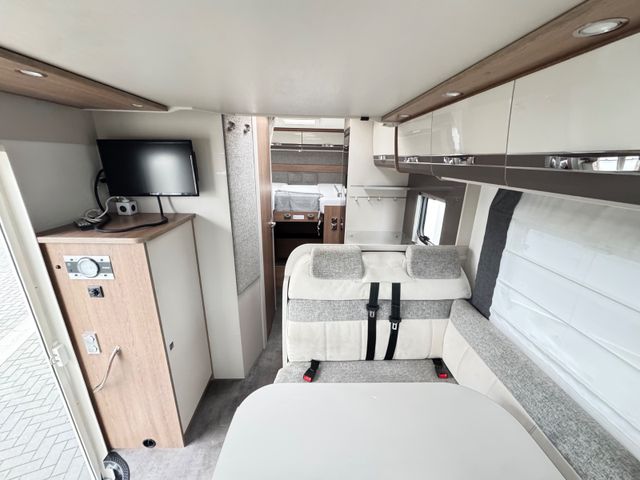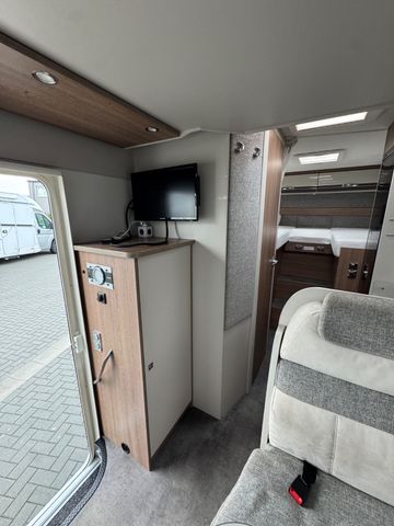 Fahrzeug ist scheckheftgepflegt. Fiat Chassis-Paket: LED-Tagfahrlicht, Außenspiegel elektrisch verstellbar und beheizt, Automatische Klimaanlage, Tempomat, Beifahrerairbag, Lederlenkrad und Schaltknauf mit Ledermanschette, Vorzeltleuchte 12 V; Große Thule-Markise Design-Paket: Holzdekor Wohnwelt Torcello, Das Fahrzeug verfügt über eine extra breite Aufbautür.