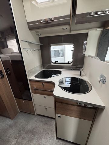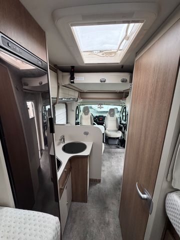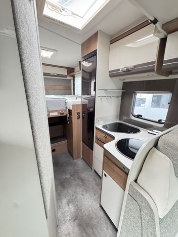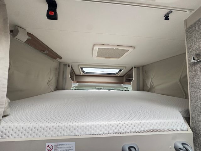 Hinterleuchteter Eingangsbereich, Küchenrückwand hinterleuchtet, Hinterleuchteter Chromgriff im Eingangsbereich, Steckdosen und Schalter in Chrom. Fliegengitter-Aufbautür, Panorama-Dachhaube 70x50 cm im Wohnraum, Verdunklungsjalousien im Fahrerhaus, Ausstellfenster in der T-Haube, LED-Lichtpaket, Aufbautür mit Fenster und Zentralverriegelung. Höhe-Neigeverstellung für Fahrer und Beifahrersitz. Tempomat Datum letzter Zahnriemenwechsel 03/2025