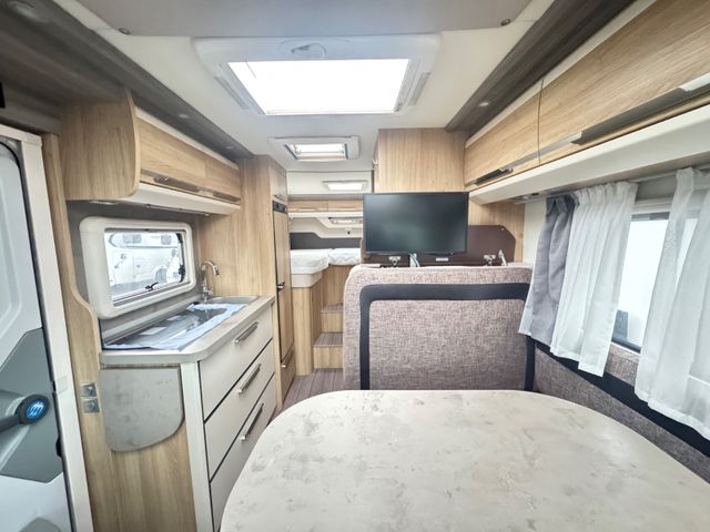 Airbags, el. Außenspiegel, höhenverstellbarer BF Sitz Sky TI Paket: Dachhaube Midi Heki, Verdunkelungssystem Fh., Abwassertank isoliert und beheizt, Fliegengittertüre, Stoßfänger vorne in Wagenfarbe, Pilotensitze im Polsterstoff drehbar Polster Indian Summer 2. Garagenklappe Rahmenfenster Markise 4 m Router in L-Sitzgruppe El. Einstiegsstufe, Solaranlage Wechselrichter Power Line PL 1500 SI