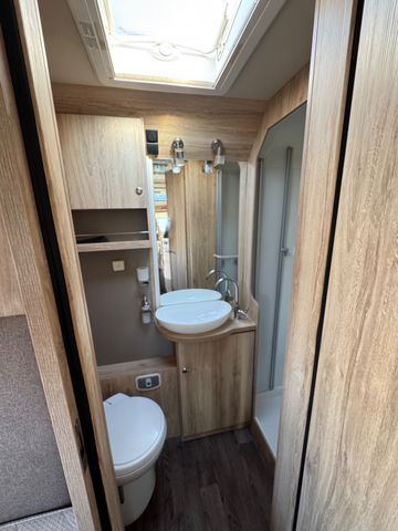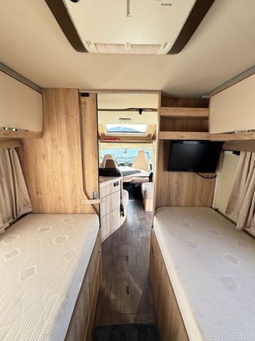 Fahrradträger, Schaltwagen, Fahrradträger Heckgarage Markise Panorama-Dach Navigationssystem SAT-Anlage Separate Dusche Servolenkung Solaranlage TV Warmwasser WC Zentralverriegelung Radio DAB Tempomat Verdunklungssystem Fahrerhaus Alle Fenster und Dachluken mit Moskitonetz und Verdunklungsrollo Anhängerkupplung fest Klimaanlage Standklimaanlage Truma Aventa Comfort mit FB,