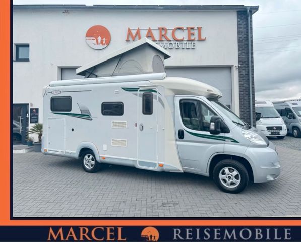 Fahrzeugdaten: Fiat Ducato 2.3 D, 131 PS 6-Gang-Schaltgetriebe Zulässiges Gesamtgewicht: 3.500 kg Leergewicht laut Fahrzeugschein: 2.942 kg Länge: 6.775 mm Breite: 2.220 mm Höhe: 2.980 mm----Ausstattung: Goldschmitt Luftfederung Fahrradträger Heckgarage mit beidseitigem Zugang (Türen rechts und links) Markise Navigationssystem Panorama-Dach Automatische SAT-Anlage + TV Rückfahrkamera Separate Dusche Servolenkung Lithium-Wohnraumbatterie (2x 100 Ah) mit App-Steuerung und Display Wechselrichter Warmwasser WC-Nasszelle mit von außen entleerbarer Kassettentoilette Zentralverriegelung Radio mit DAB+ Tempomat Feste Anhängerkupplung Klimaautomatik ABS (Anti-Blockier-System) ASR (Antriebsschlupfregelung) Elektrischer Fensterheber (Fahrer) Elektrisch verstellbare Außenspiegel (beidseitig) Fahrer- und Beifahrerairbag Wohnraumtür mit integriertem Fliegengitter Kühlschrank mit Gefrierfach----Küche: 3-Flammen-Gaskocher Fester Gastank Spüle mit Glasabdeckung Truma Combi-Heizung----Bereifung & Räder: Allwetterreifen auf Alufelgen----Sitz- und Schlafgelegenheiten: 4 zugelassene Sitzplätze 4 Schlafplätze: Doppelbett im Heck Aufstelldach mit Doppelbett Bettumbau der Mittelsitzgruppe----