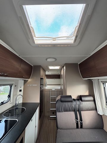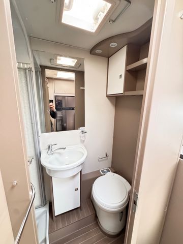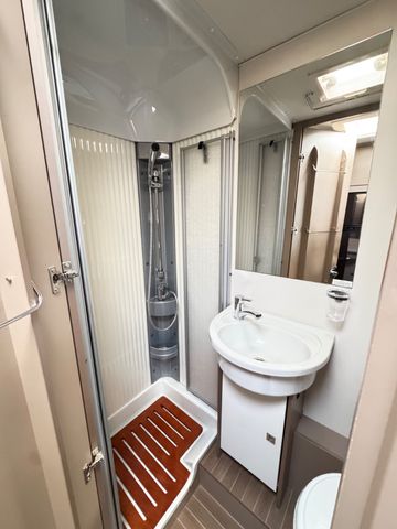 Nichtraucher Tierfrei Fahrradträger Heckgarage Markise Panorama-Dach SAT-Anlage Separate Dusche Servolenkung Truma Combi Gasheizung mit Warmwasser TV Warmwasser Separate Dusche & WC mit Fenster Zentralverriegelung Radio / CD, AUX Anschluss, USB Anschluss, Bluetooth Tempomat Kleiderschrank Rundum-Verdunkelungsrollo und Moskitonetz-Rollo Bordcomputer Anti-Blockier-System (ABS) Antriebsschlupfregelung (ASR) 2x elektrische Fensterheber 2x elektrische Außenspiegel Fahrer- und Beifahrerairbag Stauraum & Außenbereich: