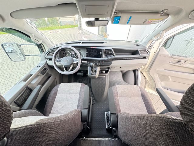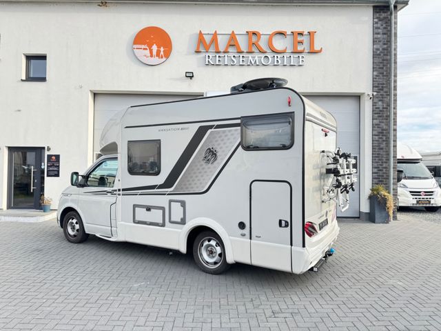 VW T6.1 110 kW / 150 PS Fahrradträger Heckgarage Lederlenkrad Markise Navigationssystem Panorama-Dach SAT-Anlage Separate Dusche Servolenkung Warmwasser WC Zentralverriegelung Radio DAB Tempomat Anhängerkupplung fest - Motor: 150 PS AUT - Einstiegstufe elektrisch - Garagentür 55 x 110cm links - Insektenschutztür - Ausstellfenster 70 x 40 cm Heck links - Ausstellfenster Hutze, mit Insektenschutz - Fahrradträger für 3 Räder, Heck: Thule Lift manuell - Aufbautür: PREMIUM - Thule Garagenordnungssystem 1 - Sonderbeklebung "Vansation" - MARKEN Emblem im Heck, schwarz / chrom - Alu Glattblech Ascot-Grau - Kurbelstützen im Heck - Hochwertige Passform-Sitzbezüge - Scheibenwischer - Intervallschaltung Das Fahrerhaus hat grün getönte Scheiben - Außenspiegel elektrisch einstellbar und beheizt - Frontstoßfänger in der Wagenfarbe lackiert - 17 Zoll Sommerreifen UNBENUTZT auf Alufelgen - Winterreifen auf Stahlfelgen - Klimaanlage mit manueller Regelung im Fahrerhaus - Multifunktionsanzeige "Premium" - Multifunktions-Lenkrad (3 Speichen) - Sitzheizung für Fahrerhaussitze - Front- und Seitenscheibenverdunklung - Notbremsassistent - Abstandsgeregelter Tempomat (ACC) - Fernlichtassistent "Light Assist" - Reifendruckkontrollanzeige - Nebelscheinwerfer inkl. Abbiegelicht - LED - Hauptscheinwerfer - Navigationssystem "Discover Media" - Induktive Ladeschale - Beheizbare Scheibenwaschdüsen - LED Tagfahrlicht - Automatikgetriebe - Vorbereitung für "We Connect"
